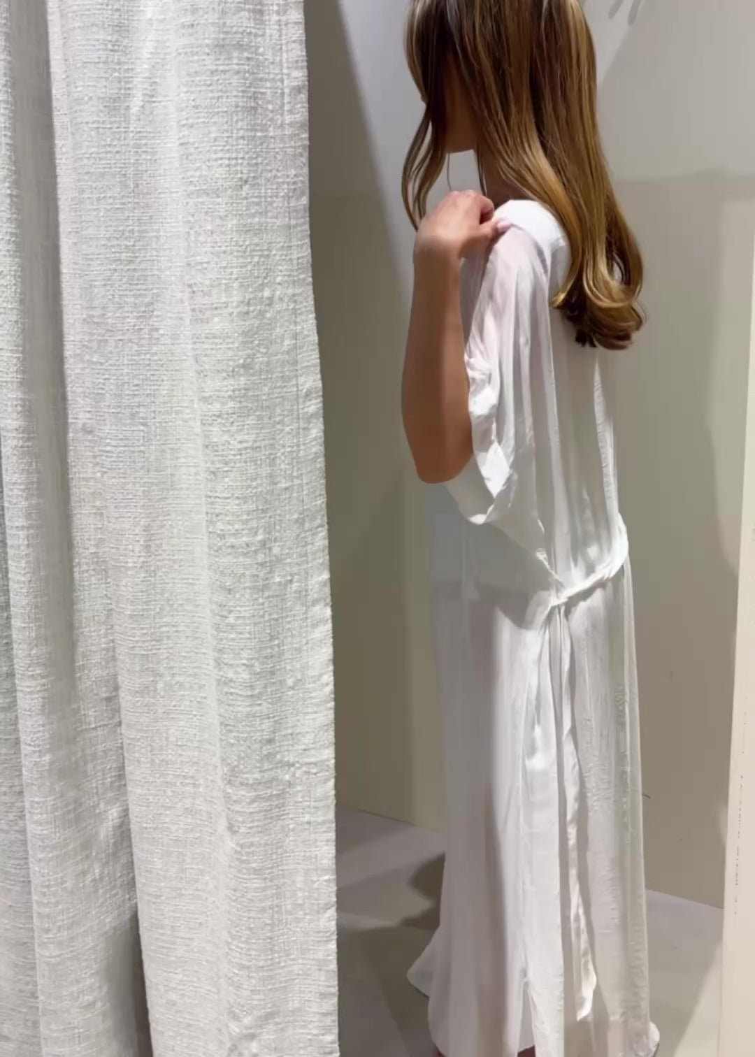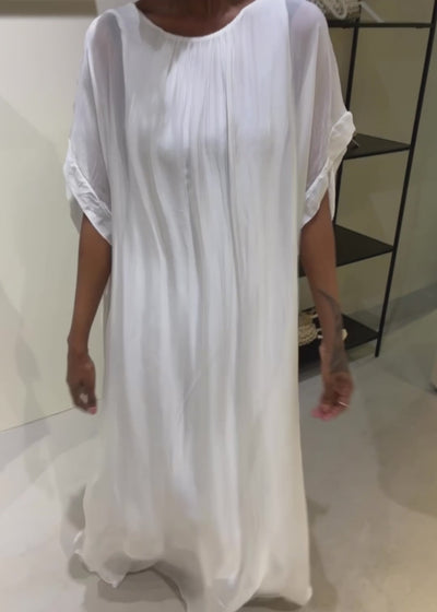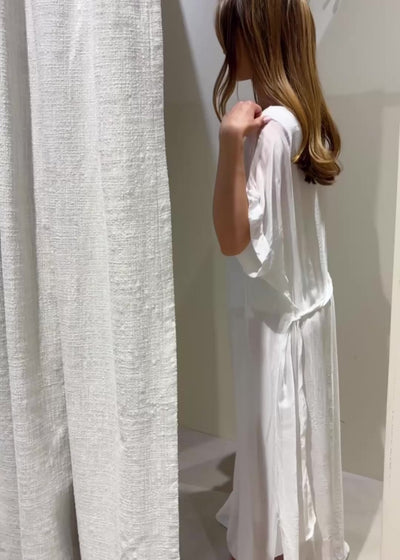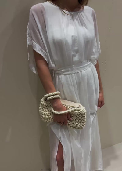 Move from barefoot home events to slow escapes. This maxi-length dress is crafted from breathable silk-viscose with a soft, fluid drape. Featuring short sleeves for ease, a detachable belt to shape the waist as you like and fully lined for all-day comfort. Simply throw-on and flow.