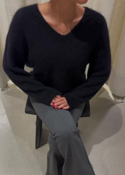 Your cocoon of comfort is here. Delicately light, yet perfectly warm, this weightless mohair blend sweater glides softly against the skin while providing cozy, year-round warmth.
