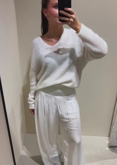 Your cocoon of comfort is here. Delicately light, yet perfectly warm, this weightless mohair blend sweater glides softly against the skin while providing cozy, year-round warmth.